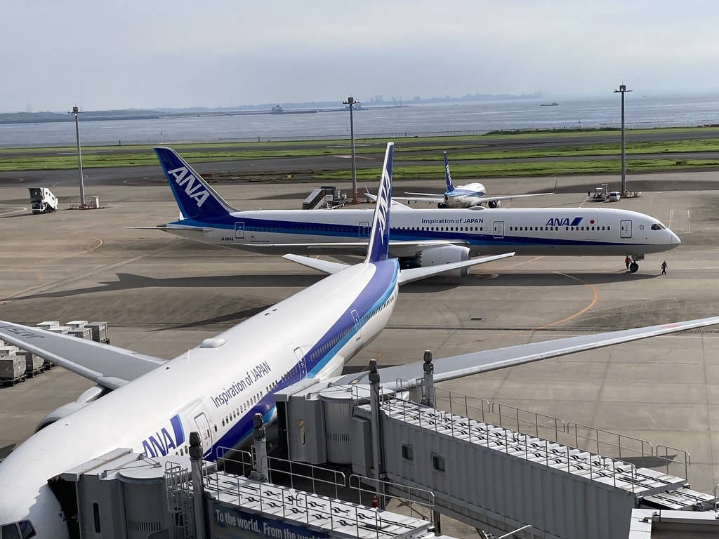目の前にANAの飛行機がいっぱい。ワクワクしてしまう。