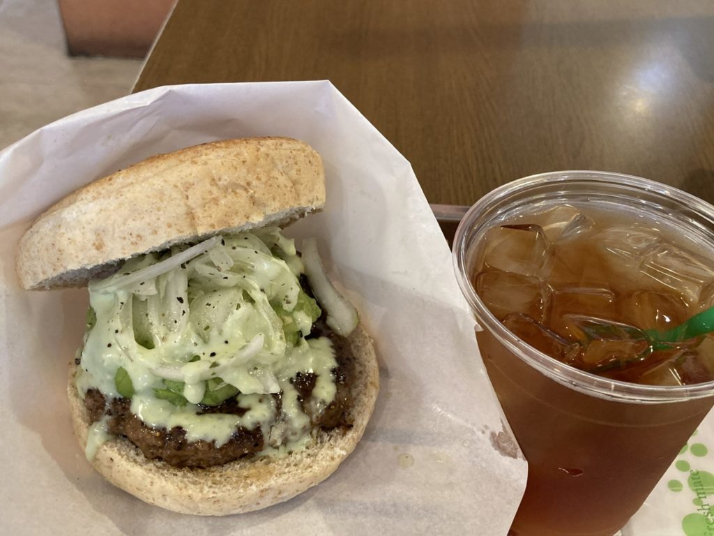 アボガドソースのハンバーガー、すごく美味しい!石垣牛のお肉もいい味。塩気もちょうど良くて汗かいた後なので嬉しい。アボガドとわさびは合う。満足の一品。