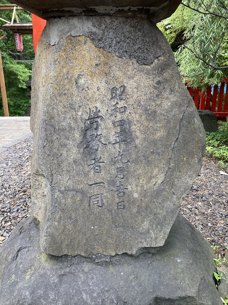 「昭和4年 労働者一同」とある灯籠もある。昭和4年は、ここに社殿ができた当初に置かれたものだ。