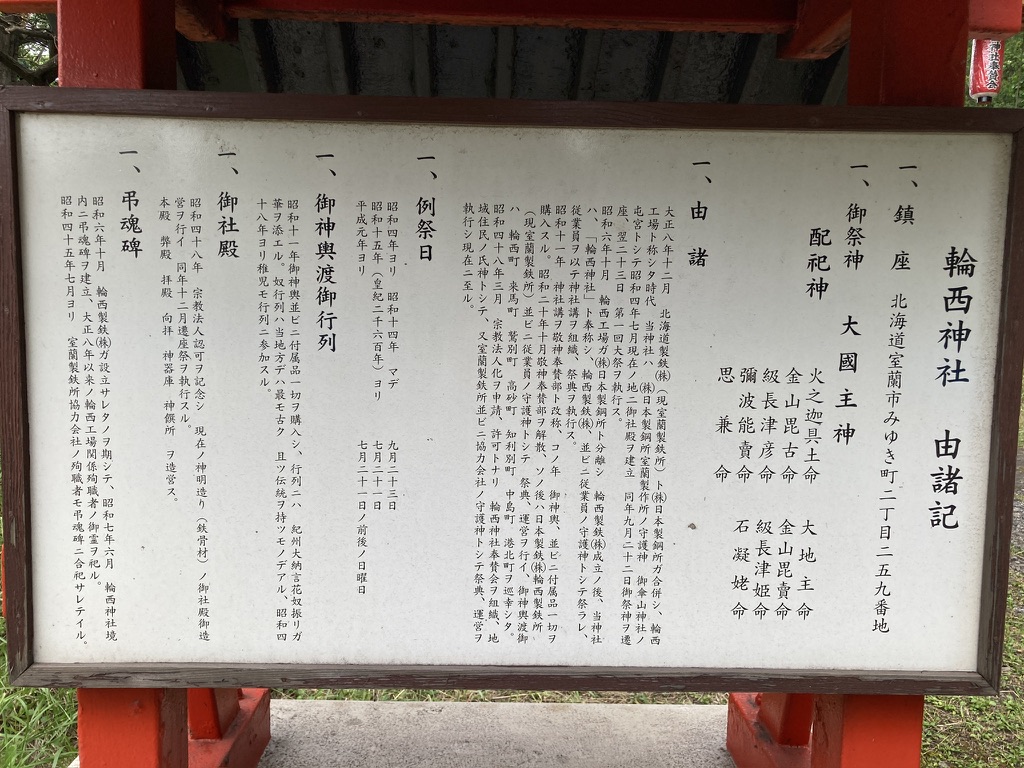 興味深かったのは、輪西神社は鉄鋼産業と深く関わっていたことが、現地の説明由緒書きの掲示から分かったこと。