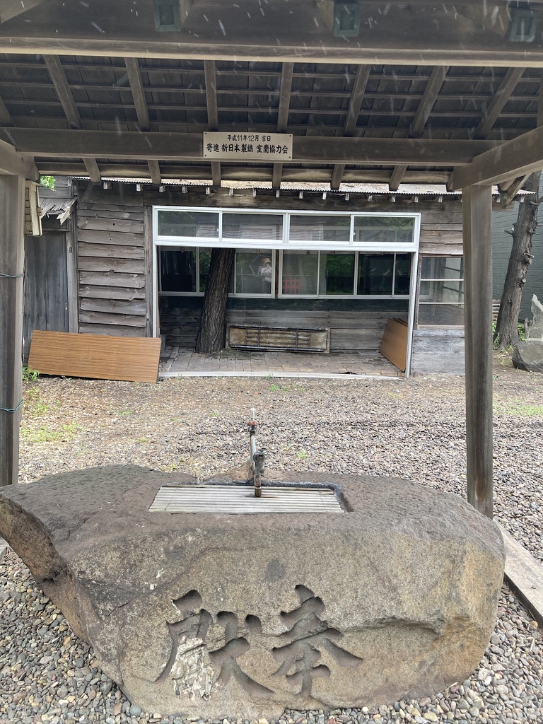 室蘭製鉄所と書かれた石があったり、「寄進 新日本製鐵 室蘭協力会」と書かれた水場があったり。