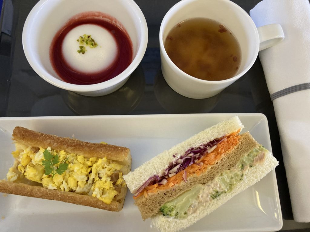 今回は自分へのごほうびという理由でプレミアムクラス。客室乗務員の方がちゃんとご挨拶に来てくれて恐縮してしまう。