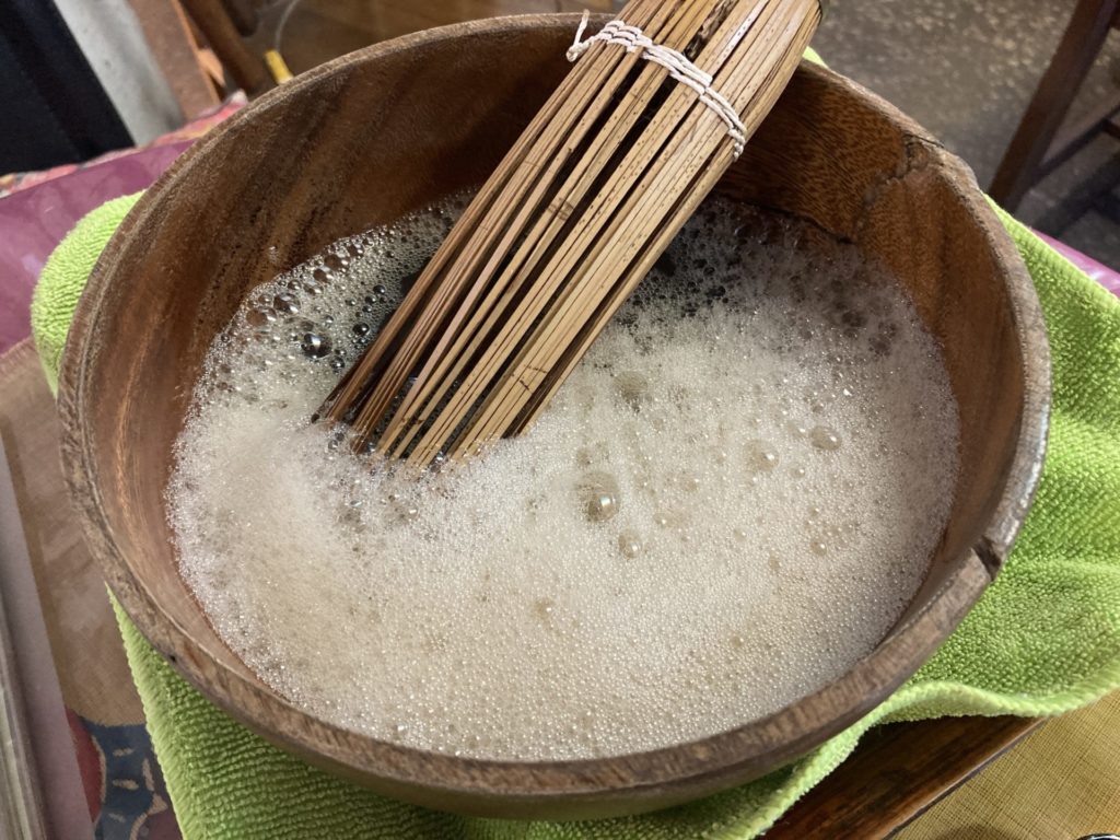 不思議な食感?飲み感?だけど、美味しかった!自分でお茶を泡立てるのがびっくりしたけど、少しずつ泡立ててはすすって、ちょっとホッとできる時間を過ごした。