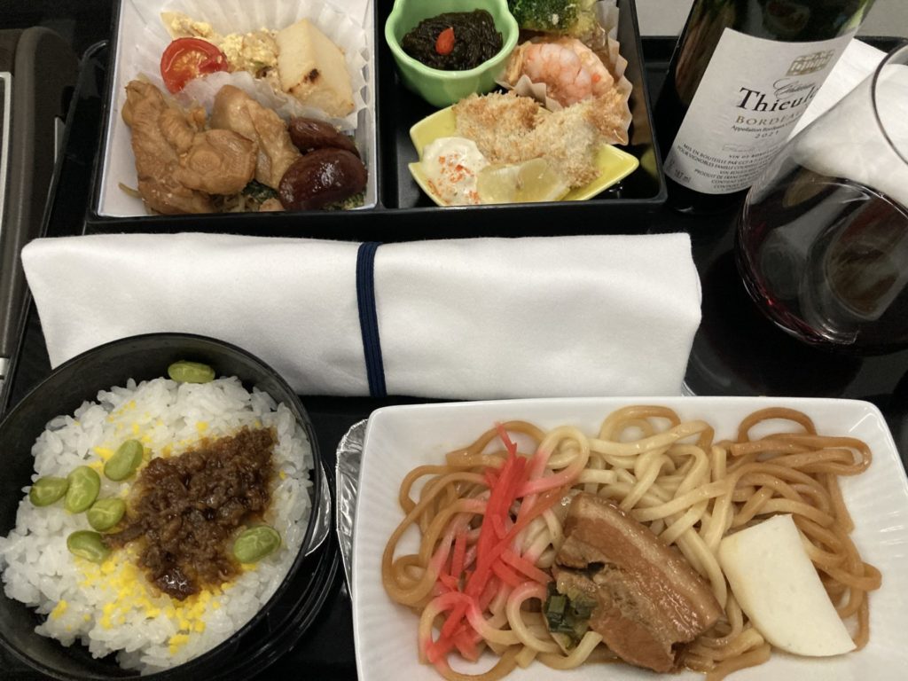 往復ともプレミアムクラスの飛行機なので、ラウンジでゆっくり過ごした。時間が経つにつれて寒くなってくるほど冷房がしっかり効いている。あまりお腹空いてないと思ってたけど、柿の種食べたら食欲が刺激される。でも機内食を美味しく食べるために一袋で我慢!