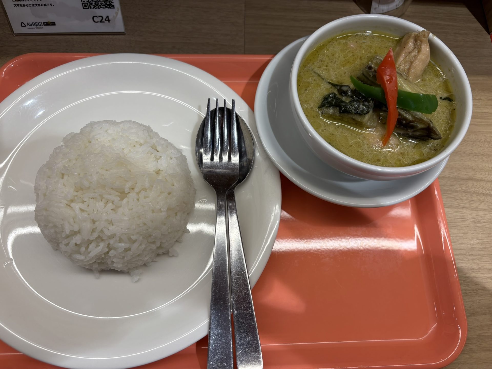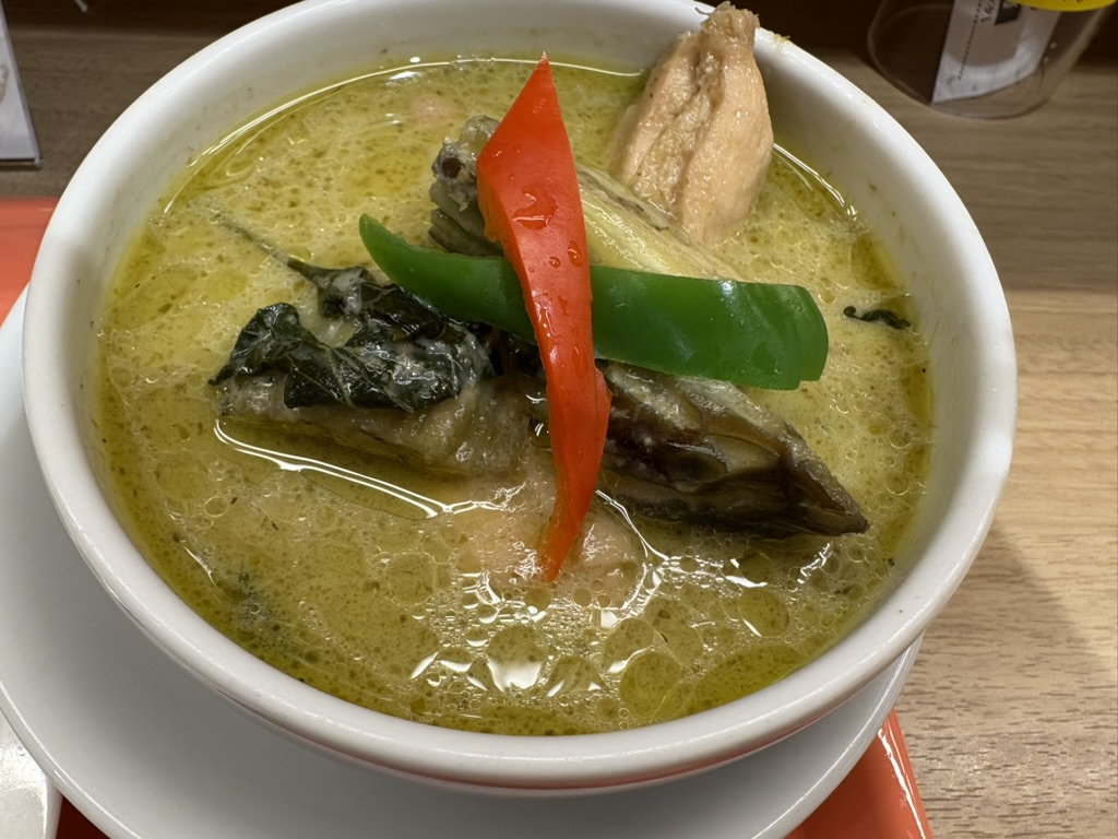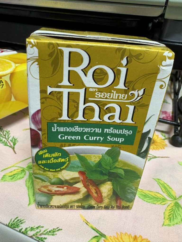 久しぶりにグリーンカレーを食べた 2025.02.28 今日はお昼ご飯にグリーンカレーを食べました。 とってもおいしかった。家でも作りたくて、KALDIに行ってグリーンカレーのスープのパックを買いました。材料は、このスープのほかに、ナスとピーマンと鳥モモ肉。 お店のふかふかの鶏肉のようにはならないけど、まずまず満足な味でした。圧力鍋使えば、お肉がもっとふっくらするかも。 ロイタイ グリーンカレースープは偉大だ(*^^*) ********